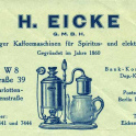 H. Eicke G.M.B.H. "Fabrik selbsttätiger Kaffeemaschinen für Spiritus- und elektrische Beheizung", Berlin W 8