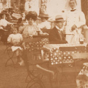 Gesellschaft und Tische im Garten vom "Seebad-Reinickendorf"