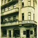 Thams & Garfs "Hamburger Kaffee Lager" , Hausfassade mit Werbung