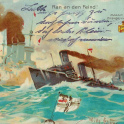 -Maggi Erzeugnisse - "S.M. Kreuzer THETIS beschießt ein Rebellendorf" Willy Stöwer