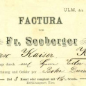 Colonial-Waaren en gros & Cafe Brennerei, Fr. Seeberger in ULM von 1887