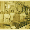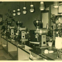 Kolonialwaren - Verkaufstresen mit versch. Marken: "Kaffee Hag, Kathreiner Kaffee, Mondamin"