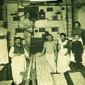 1930er JahreBäckerei "Innenansicht" mit Backofen und seinen Mitarbeitern
