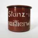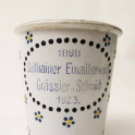 Musterbecher aus Email, mit unterschiedlichen Dekoren