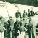 Das Kaiserpaar mit Graf Zeppelin verlassen den Landungslatz